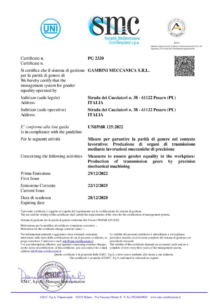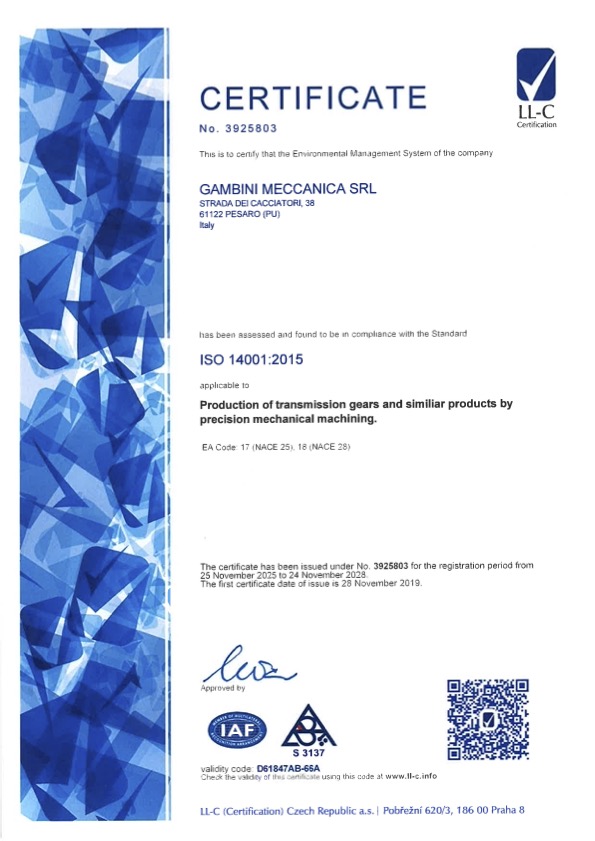 Gambini Meccanica Srl ist schon seit 1998 eine zertifizierte Firma nach ISO 9001:2015